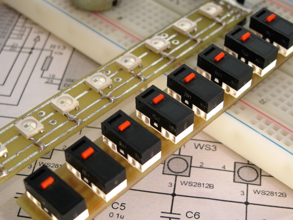 В рабочем режиме при нажатии на кнопки схема будет издавать соответствующую ноту и отображать её номер, полыхая при этом определённым цветом светодиодной линейки.