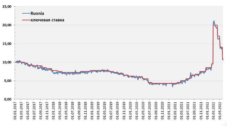 RUONIA - это под какой процент банки одалживают друг другу. "В разные периоды с 2010 года список участников RUONIA включал от 28 до 35 организаций. С 01.06.2022 года в списке числятся 35 банков" Как видим, RUONIA и КС ЦБРФ - это практически одно и то же. Надо сказать, что, на самом деле, ОФЗ-29й серии - это два разных по свойствам группы, подкласса. ОФЗ с 29006 по 29012 имеют добавку к Руонии от +1,2% у 29006й до +0,4% у 29012й. Эта добавка/премия постоянна для каждой облигации, и придаёт ей свойства, сближающие е с ОФЗ-ПК (26я серия). Кто как, лично мне тут видится явное дефляционное реагирование: чем ниже инфляция, ем выше курс. Ничего интересного тут нет, потому что точно так же реагируют ОФЗ 29й серии - с постоянной доходностью. Только 26е реагируют сильнее. Если уж защищаться от дефляции - то определённо лучше это делать в ОФЗ-ПК (26 серия). Гораздо необычнее ведут себя ОФЗ-29 без премии к Руонии: с 29013 по 29023 (сюда же - ОФЗ 24021). ОФЗ 29015: ОФЗ 29013: Вы видите на графиках