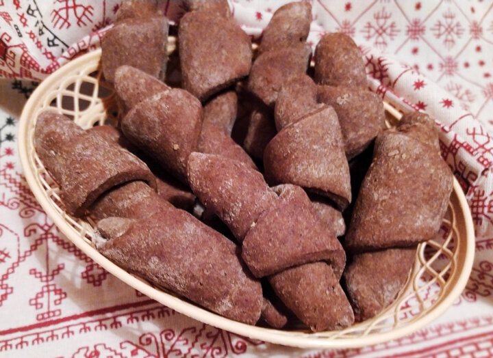 ✓ Вяленая вишня - пара горстей. Все сорта муки, соль, соду и подсластитель смешал в миске. В другой взбил венчиком кефир с яйцом. Всыпал сухую смесь и замесил тесто. Оно получилось довольно липкое. Собрал в комок, накрыл пищевой плёнкой и оставил при комнатной температуре на 1 час. Чуть припылил мукой рабочую поверхность. Тесто разделил на три части. Раскатал часть теста в круг, нарезал его на сегменты при помощи ножа для пиццы. На широкую часть выложил вишню. Скрутил рогалик. Выпекал при 180° 20-25 минут. Всем приятного аппетита, и не хворать! Больше общения и рецептов - в группе "Рецепты для диабетиков" в ВКонтакте! Рецепт на странице ВК Автор рецепта – Юрий Колосов