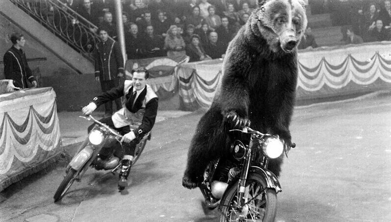 Одному медведю выдали водительские права в Германии Однажды медвежий цирк Валентина Филатова был на гастролях в Штутгарте, и немцы, впечатленные вождением мотоцикла медведицей по имени Девочка, выдали ей настоящие водительские права. Через 10 лет цирк снова приехал в этот город, и администратор решил устроить рекламную акцию, выпустив Девочку на мотоцикле на улицы города. Медведица проехала несколько кварталов, остановившись один раз на красном сигнале светофора, а затем всё-таки ударила в бампер «Мерседес» администратора, хотя авария случилась по вине какого-то лихача на «Фольксвагене».