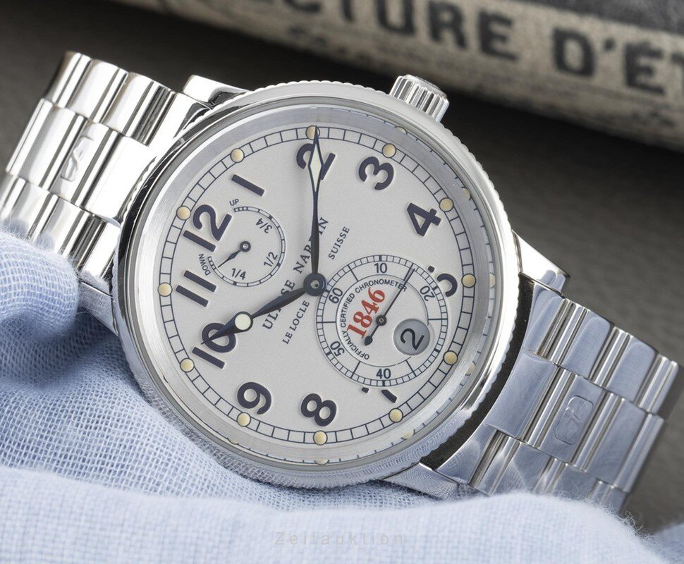 Конечно, упускать такое наследие современному, пускай и далёкому от себя прежнего, Ulysse Nardin было бы неправильным, а поэтому, дорогие читатели, сегодня мы с Вами взглянем на популярную модель Marine Chronometer 1846 из 2000-х, которую сегодня можно приобрести за небольшие деньги.