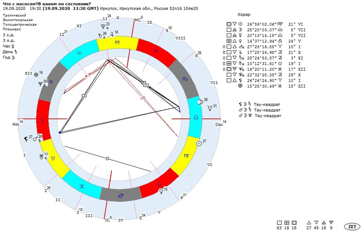 Поскольку сигнификатор Кверента и Квезита (Марс), а также Луна расположен в угловых домах, то я смело предположил, что ситуация с технической неисправностью насоса должна довольно скоро по крайней мере проясниться.