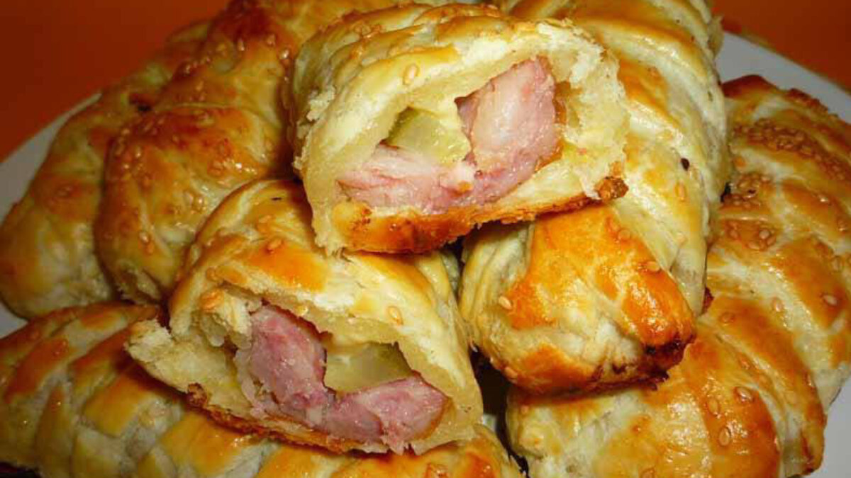 Сочный штрудель с картошкой и сосисками: бросить все в слоеное тесто и в духовку — аромат отменный!
