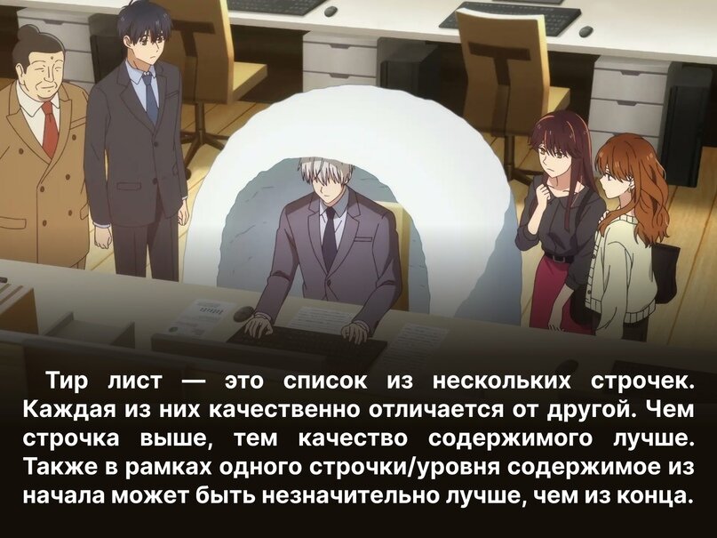 Вы уже оценили все вышедшие аниме новинки сезона? Все 50+ тайтлов? Если нет, то предлагаю взглянуть на мои тир листы. Возможно, что-то не получило должного хайпа или же вы не успели уследить за всеми новинками. В общем приятного вам знакомства, а также можете поделиться бинго с друзьями~ Пару слов про тир листы Если очень грубо, то купюра номиналом 5000 рублей это первый тир(строчка), 2000 рублей — второй тир, а 1000 рублей — третий тир. Что насчет двух купюр номиналом 2000 рублей? Определенно это будет первый тир, но справа от купюры номиналом 5000 рублей. Такая вот математика тир листов :) Наши новые друзья Легкие, значит преимущественно наполненные повседневностью и лишенные значимого сюжетного развития. Это выбор для отдыха и расслабленного досуга. В этом тир листе отобраны преимущественно сюжетные тайтлы, которые могут оставить большее впечатление, чем предыдущая подборка. Больше смысла — больше моментов, которые можно запомнить, осмыслить и прочувствовать. Знакомы не первый сезо