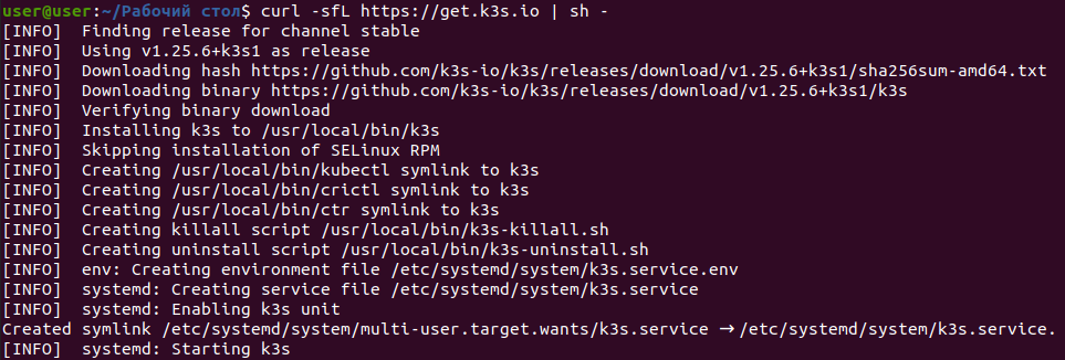 Команда для установки и запуска K3s ( Kubernetes ) в Ubuntu 20.04