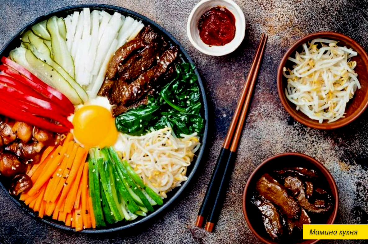 Бибимбап является одним из самых популярных южнокорейских продуктов. Это буквально означает «смешанный рис» и относится к корейскому блюду, приготовленному из теплого белого риса, увенчанного кохчуджаном, доенджангом, соевым соусом и различными обжаренными и приправленными овощами, такими как огурец, ростки соевых бобов, редис, шпинат и грибы.