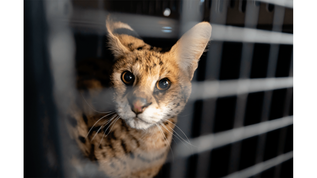 Фермер, чье имя не называют, нашел на своем участке «сумасшедшую кошку». Зверь бегал по территории и прятался в сене, не подходя близко к людям. Животное несколько раз приходило на участок в течение полугода. Мужчина попросил помощи у приюта для диких животных и выяснил, что котенок оказался африканским сервалом. «Было удивительно, что эта кошка смогла прожить шесть месяцев, но ей это явно удалось, судя по количеству птичьих перьев, которые мы нашли на месте, — сказала президент заповедника дикой природы Таня Смит. — К счастью для этого сервала, люди, поймавшие его в ловушку, очень хорошо о нем заботились… но откуда он взялся, остается загадкой». Сервала забрала команда спасателей TCWR. Они показали животное ветеринару, и тот сказал, что «котенку» примерно три года. Сервал был здоров и не пострадал от морозов, возможно, потому что жил под тюками сена, защищаясь от непогоды. «Ветеринар не смог найти микрочип, — говорит Смит. — Мы не знаем, была ли эта кошка попыткой приручения в качеств
