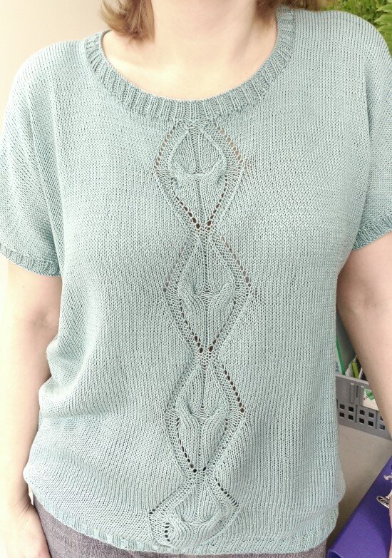 Привет! Как оказалось, когда я разбирала свой вязанный гардероб, что у меня много вязанных футболок. Носить вязанные летние футболки для меня одно удовольствие, так как пряжу я выбирала натуральную (хлопок, шёлк, бамбук и т.д.). Этот материал обладает основными свойствами: Да, из этого материала вещи вязать очень трудно, нить иногда грубая, после стирки может давать усадку, зачастую довольно тонкая и надо использовать спицы №2 и менее, но это того стоит. Ранее в публикациях "Пять ажурных узоров спицами" и "Вязание из центра, мой опыт", я уже делилась узорами футболок, если вам интересна эта тема, давайте рассмотрим ещё несколько. У меня нет специальных названий моим изделиям, я просто опубликую их под номерами вместе со схемами узоров. Для удобства условные обозначения публикую к каждой схеме. Схемы предназначены для кругового вязания, где показана лицевая сторона работы и расположены соответственно направления вязания. Для вязания поворотными рядами, нужно учесть: Футболка №1: Футбол