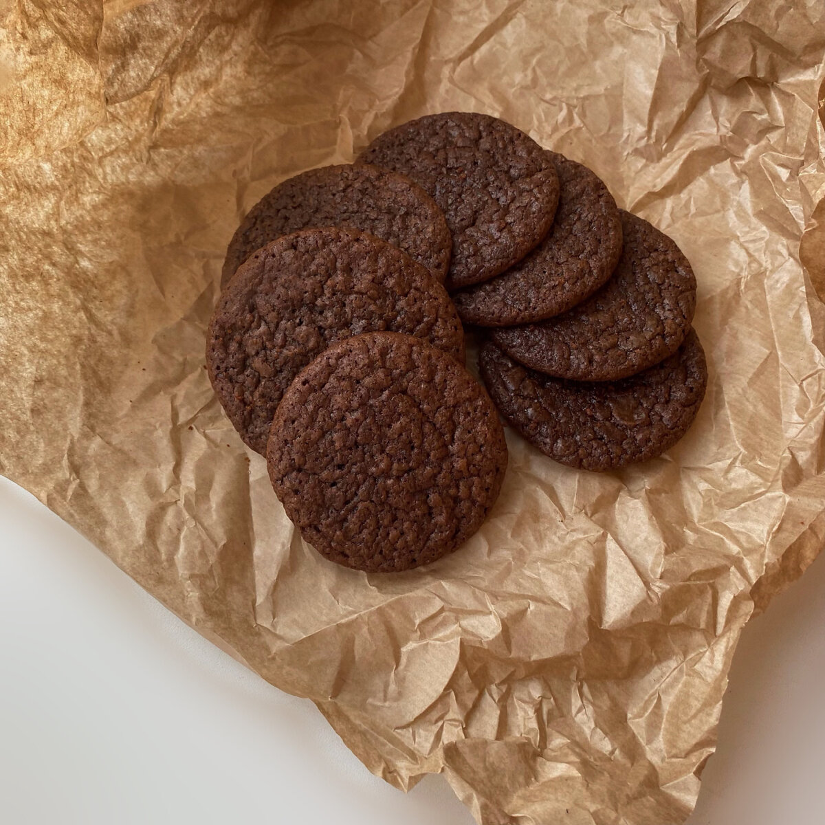Ингредиенты: • Шоколад 200 гр (можно взять только темный, а можно смешать темный и молочный) • Сливочное масло 120 гр • Сахар белый 150 гр • Сахар коричневый 100 гр (можно использовать только белый) • Яйца 2 шт (комнатной температуры) • Мука 130 гр • Какао 3 ст.л • Разрыхлитель 1 ч.л без горки • Соль 1/4 ч.л. для посыпки Смешиваем муку, соль, разрыхлитель и какао. Растапливаем шоколад и сливочное масло до однородной консистенции. Можно растопить на водяной бане или импульсами в микроволновке. Массе даем остыть (!) В миску разбиваем яйца и взбиваем , постепенно добавляя сахар. Взбиваем непрерывно 5 минут до получения пышной воздушной массы. Теперь вливаем остывшую шоколадную массу к яйцам. Аккуратно и недолго перемешиваем лопаточкой. Добавляем сухие ингредиенты, перемешиваем. Отправляем в духовку 180 градусов 11-12 минут. Время выпекания зависит от размера печенек. Главное - не передержать,центр должен остаться мягким. Дайте им остыть и приятного аппетита! ❤️🔥