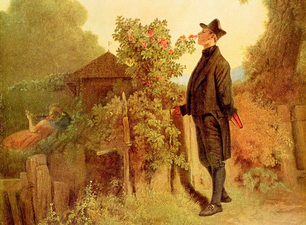 Кто же такой этот Бидермейер? В переводе с немецкого "Бидер" - глупый, простой, а Мейер это одна из популярнейших немецких фамилий. Глупый Мейер - тип очень недалёкого мелкого бюргера (мещанина), мир которого ограничен его маленьким домиком, милым садиком и скромным жалованьем.