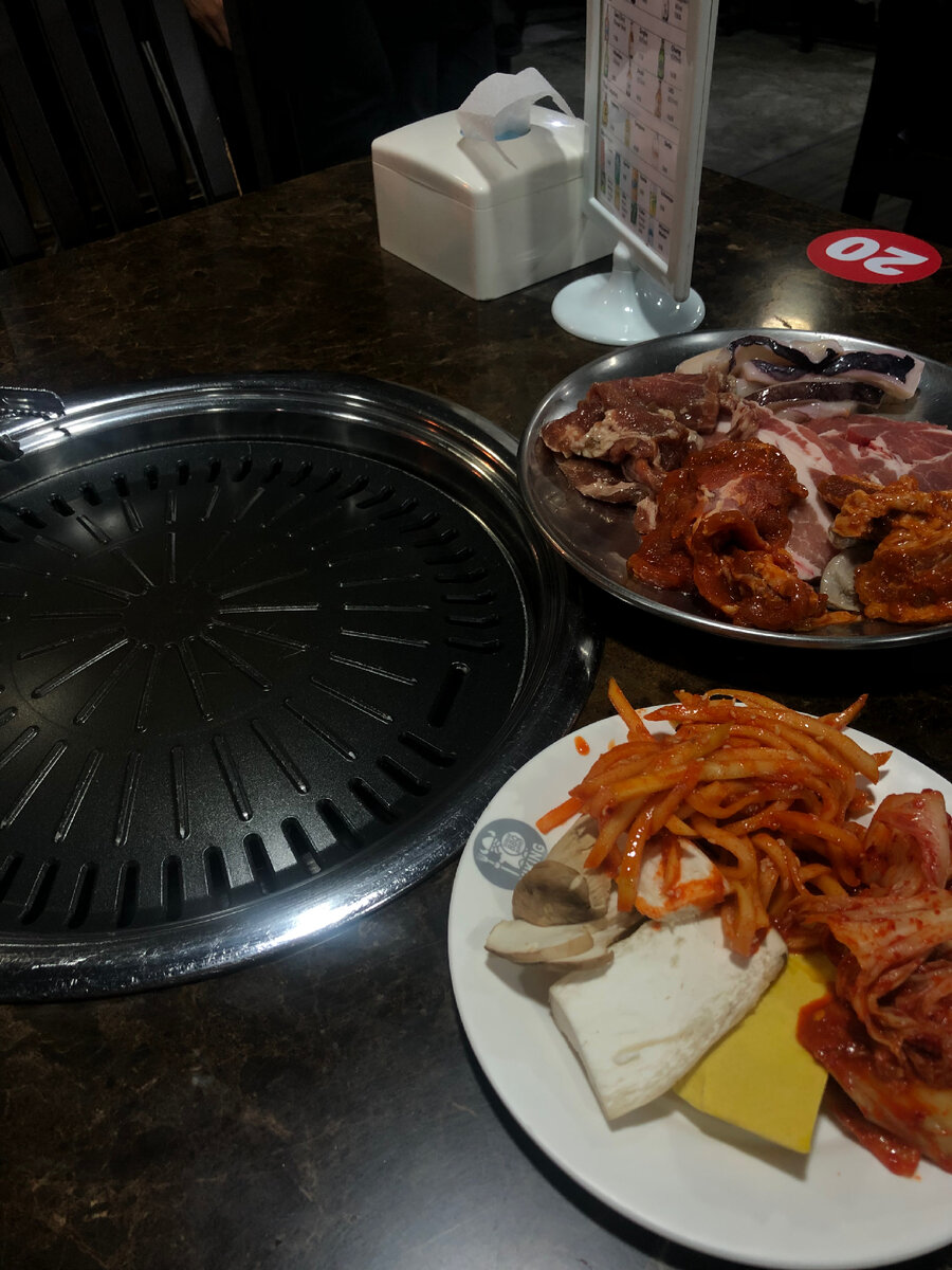 В моей коллекции накопилось много кафе и ресторанов, в которых вроде бы хорошо, но вот посоветовать туда поехать специально не могу. А вот если будете проходить мимо таких вот мест — не проходите мимо! Viking Korean BBQ Buffet Корейское барбекю в «Корейском квартале». Аттракцион занятный: платите фиксированную сумму за вход (в ноябре 2022 мы платили ~600 рублей за человека) и полтора часа радуете свой желудок. В буфете набираем разные части свинины, кальмары, овощи, салаты, закуски и занимаем стол. В столе встроены грили, на которых все набранное нужно жарить. И так все полтора часа, никто количество подходов к буфету не считает. Можно заказать газировку и пиво (особенно важно, если съедите много кимчи). Через полтора часа выкатываетесь и обещаете себе больше не переедать. Hachiban Ramen, No.8 Ramen Это сетевое японское кафе, которое специализируется на лапше. Найти его можно в Таиланде, Вьетнаме, Гонконге, Японии. Традиционно я беру здесь рамен с уткой за 105 бат (210 рублей), с