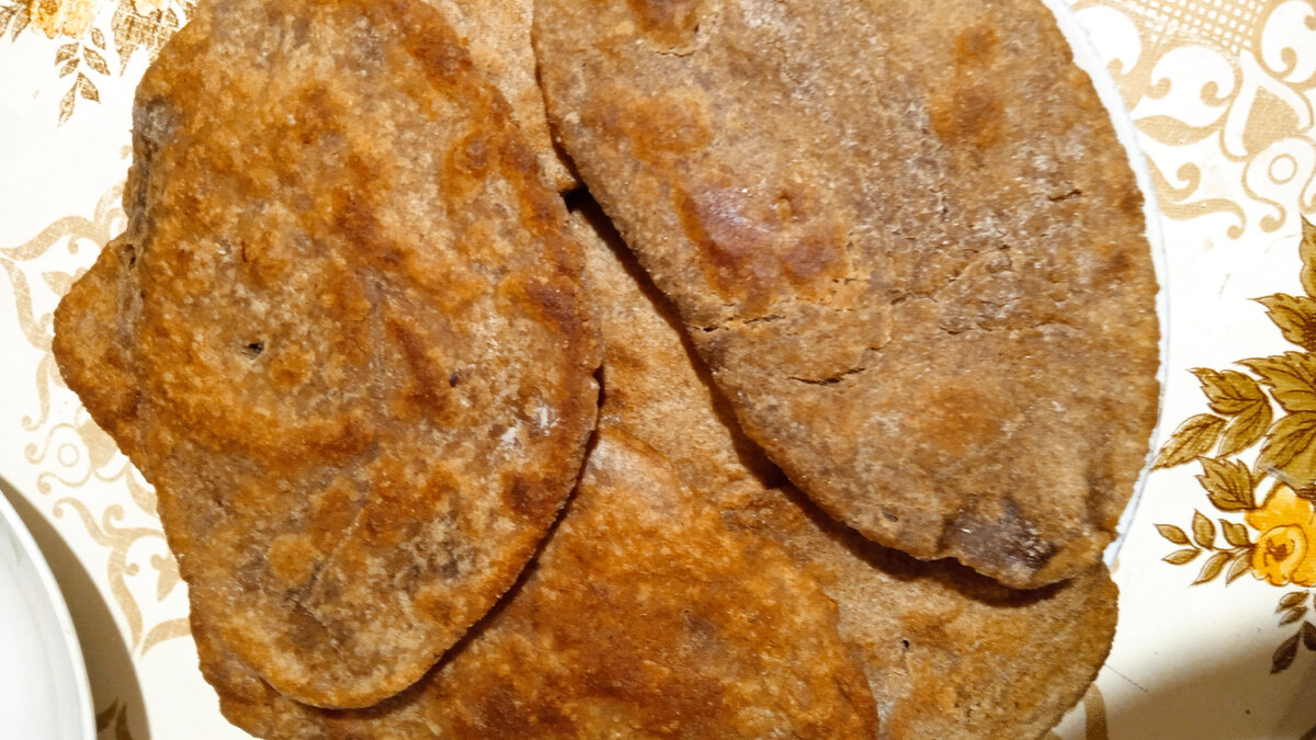 Это возможно? Действительно? Когда то я работала поваром и пекла их довольно часто. Потом со временем это как то подзабылось. И вот однажды, во время поста сели обедать, а хлеба не оказалось. Хотела испечь хлеба, но хлебопечка некстати сломалась. И тут из подсознания вспомнились лепёшки. После обеда я этим делом занялась, благо процесс недолгий, только жарка занимает какое то время. Итак, ржаные лепёшки. Тесто тёмное, мука то ржаная. Рецепт: Вода:0, 3; 0,5л Соль: 0,5 ч. л Сода: меньше 0,5 ч. л Сахар: 1-2 ст. л Растит. масло: 3-5 ст. л Мука- сколько возьмет в себя вода. Приготовление: Берем широкую миску, наливаем теплую воду, добавляем соль, сахар, соду, растительное масло ну и конечно ржаную муку. Тесто хорошенько вымешиваем. По консистенции как мягкий пластилин. Постепенно добавляем муку, чтобы тесто не липло к рукам. И оставляем шар на столе мин на 20. Затем тесто разделить на несколько частей, скатать в колбаску и нарезать небольшими кусочками. Кусочки раскатать в небол