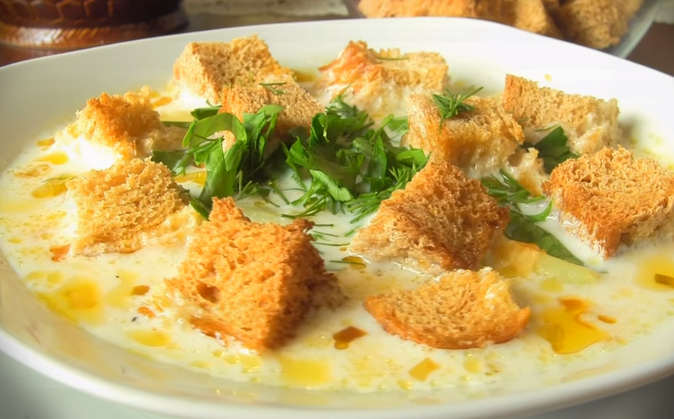 Сегодня мы с вами приготовим нежнейший сливочный суп, который поднимет вам настроение в хмурые дни. Сливочно-сырный суп с чесночными сухариками Нам понадобится Сливки 20 % - 250 мл Вода – 1.5 л Сливочное масло – 50 г Мука – 1 ст. л. Лук репчатый – 1 шт. Чеснок – 1 головка Картофель – 2 шт. Красный болгарский перец – 1 шт. Ломтики белого хлеба – 3-4 шт. Твердый сыр – 150 г Петрушка, укроп – 1 пучок Мускатный орех – 1 щепотка Чабрец – 1 ч. л. Базилик – 1 ч. л. Приготовление Очистим картофель и нарежем его мелкими кубиками. Залить картофель водой, слегка посолить и варить до готовности 15-20 минут. Нашинкуйте лук, чеснок мелко измельчить, болгарский перец разрезать на две части и очистить от семян. Предварительно разогреть духовку до 190° и отправить перец на 10-15 минут до появления черных подпалин. Лук и половину чеснока поджарьте на сливочном масле – 25 г. до золотистого цвета. К овощам добавить ложку муки и хорошо перемешать, поджарьте до появления слабого орехового запаха, а затем до