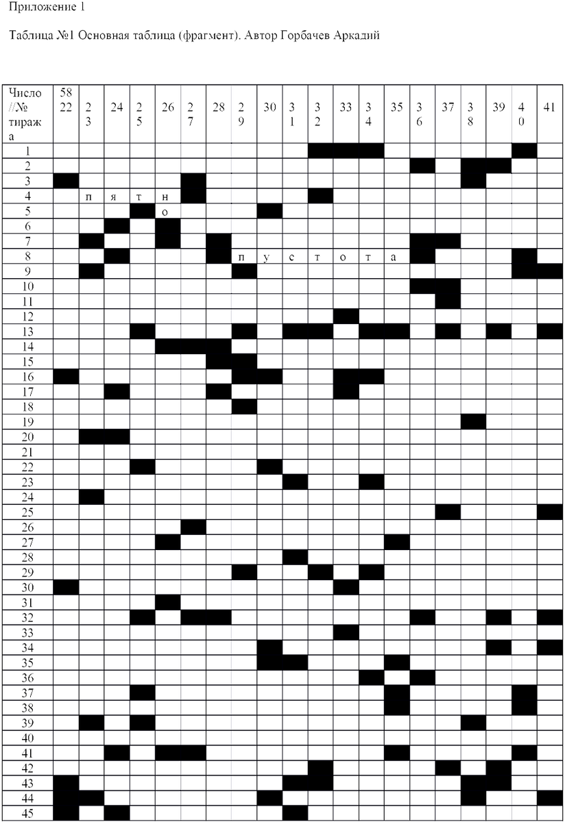 Смотри приложение: таблица №6. В этой таблице плотность выпадения чисел в играх соответствует плотности реальной Вселенной.