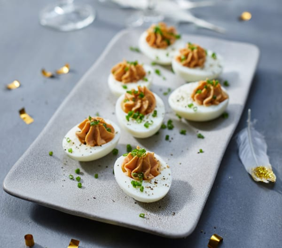 Фаршированные яйца – легкое в исполнении и разнообразное в вариантах блюдо. Первый секрет популярности фаршированных яиц заключается, конечно же, в самих яйцах. Ингредиенты - 400 г воды комнатной температуры - 6 яиц (средние), холодные - 30 г несоленого масла - 50 г печеночного паштета - 5 г бренди - ¼ чайная ложка соли - 2 щепотки молотого - зеленый лук, нарезанный мелкими кольцами Уже в продаже электронная книга в формате pdf по цене 500 рублей. По вопросам приобретения можно обращаться WhatsApp +79287768843 Приготовление 1. Налейте воду в Миксерную чашу, вставьте паровую корзину и положите в нее яйца, затем варите 14 мин. / Варома / скорость 1. Снимите паровую корзину с помощью лопатки. 2. Яйца промыть под холодной проточной водой, очистить, разрезать пополам и аккуратно удалить желтки. 3. Положите в Миксерную чашу желтки, масло, печеночный паштет, бренди, соль и перец и перемешивайте 30 секунд / скорость 3. 4. Приправьте по вкусу и переложите смесь в кулинарный мешок. Этой смесью н