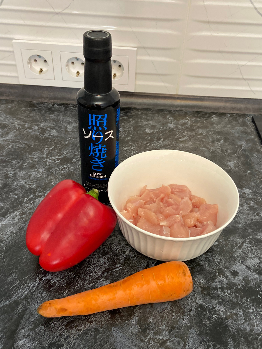 Нежная курочка в соусе Терияки с японской лапшой. Курочка замаринованная в таком соусе будет мягкой и просто таять во рту! Ингредиенты ( на 3 порции): 🔸Филе куриное 1 шт. (200-300 г.); 🔸Морковь 30 г.; 🔸Перец болгарский 45 г.; 🔸Соус Терияки; 🔸Лапша Удон. 1) Куриное филе режим небольшими кусочками (1-2 см). 2) Заливаем соусом терияки (чтобы практически скрыло кусочки) и отправляем в холодильник мариноваться на 20-30 минут. В это время подготавливаем остальное. 3) Морковь и перец режем соломкой. 4) Готовим лапшу. Опустить лапшу в подсоленную кипящую воду и варить 3 минуты на среднем огне помешивая. После отваривания следует сразу промыть холодной водой, чтобы остановить процесс варки. Готовая лапша на вкус должна быть плотной, но не твердой. 5) На разогретую сковороду выкладываем кусочки курицы и обжариваем со всех сторон в течение 5-7 мин., на большом огне, периодически помешивая. 6) Добавляем овощи, убавляем огонь на минимум и готовим под крышкой. Овощи должны стать мягче