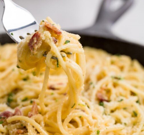 Когда вам захочется поесть сливочной пасты, ничто не спасет вас так быстро, как карбонара. Это блюдо из пасты с римскими корнями — беспроигрышный вариант, для его приготовления требуется всего 5 ингредиентов (не считая соли и масла), а готовится оно от начала до конца за 20 минут. По сути, это просто » погружение» в кладовую — спагетти, бекон, чеснок, яйца и пармезан — ингредиенты, которые легко иметь под рукой и которые не портятся быстро. Что касается сливочности, то это заблуждение, что карбонара готовится со сливками (подробнее об этом ниже) — сливочность появляется благодаря шелковистому яично-пармезановому соусу, и для того, чтобы сделать его правильно, требуется определенная техника. Как только вы освоите технику, этот рецепт вы сможете повторить по памяти. А пока ознакомьтесь с нашими советами и наслаждайтесь! Посолите воду! Одна из самых больших ошибок при приготовлении пасты заключается в том, что люди недостаточно солят воду в кастрюле. Не добавляйте только щепотку соли. Есл