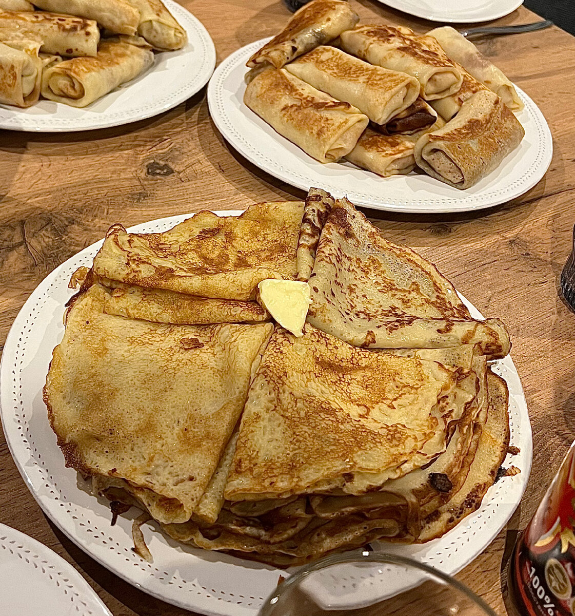 В прошлом году на масленицу я решила найти рецепт самых вкусных блинчиков, перепробовала много разных: на кефире, на молоке, дрожжевые, но эти оказались самыми вкусными, их можно есть даже без какой-либо начинки. Рецепт на 15 штук Понадобится: Молоко 300 мл; Вода 300 мл; 2 яйца; Мука 170 гр; Крахмал 40 гр; Соль 7 гр; Сахар 40 гр; Подсолнечное масло 50 гр. Соединяем в миске молоко, яйца, сахар и соль, перемешиваем венчиком, далее вводим крахмал, перемешиваем, чтобы он разошелся и добавляем муку. Если не получается венчиком размешать без комочков, можно пробить блендером. 300 мл воды кипятим и тонкой струйкой вводим в нашу массу, постоянно помешивая, чтобы наше тесто «заварилось». В конце добавляем подсолнечное масло и хорошо перемешиваем. Жарить на хорошо разогретой сковородке, маслом можно ее не смазывать, так как оно уже есть в тесте. Перед каждым новым блинчиком перемешивайте тесто половником, чтобы масло равномерно распределились. Можно смазывать блинчики сливочным маслом, чтоб