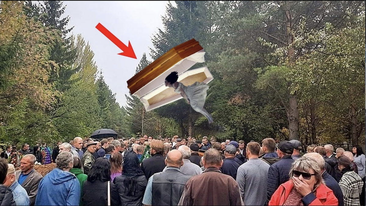 Ну, не долго думая, они в итоге рухнули на деревенском кладбище. С этим вроде бы все просто, и кладбище готово. Придумали такую конструкцию с тросами, канатами, что как только гроб с кирой начинает опускаться в могилу, он, наоборот, начинает подниматься к ней, и ни тросов, ни канатов не видно.