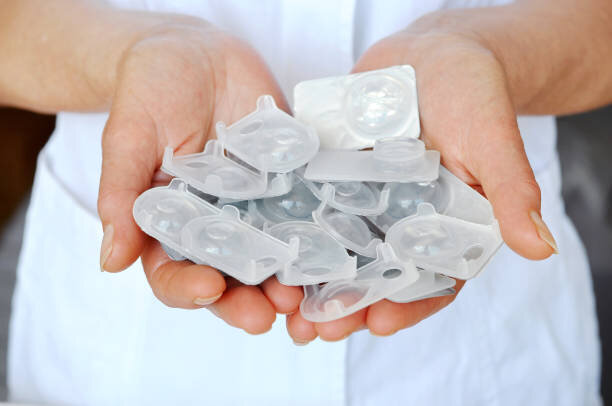 Виды контактных линз. Линзы отличаются по материалу: Мягкие контактные линзы. Такой тип линз при близорукости носит большинство пользователей. Выделяют две основные группы по материалу изготовления: 1. гидрогелевые (много влаги, тонкие и эластичные, комфортны в ношении, но недостаточно хорошо «дышат»), 2. силикон-гидрогелевые (меньше влаги, но лучше «дышат», чем гидрогель, меньше риск гипоксии, упругий, хорошо держит форму). Жесткие газопроницаемые линзы – ортокератологические или ночные. Применяются для коррекции зрения в «сложных» случаях: · высокая степень астигматизма, · кератоконус, · как метод замедления прогрессирования близорукости у детей. Жесткие линзы для глаз производятся из газопроницаемых безопасных материалов, они хорошо сохраняют форму. Высокое качество зрения при близорукости в них обеспечено. Типы линз по назначению: Оптические: · Сферические или асферические - мягкие контактные линзы для коррекции зрения. В них только одна оптическая. У линз асферического дизайна ми