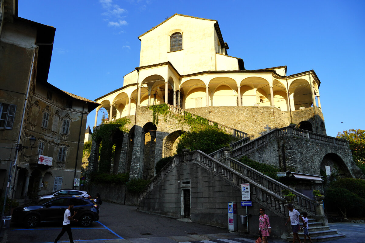 Паломники едут как раз на верх в Сакро-Монте-ди-Варалло, то что в видео я назвал средневековым Диснейлендом, расположенном на высоте 150 метров над городом Варалло и являющимся известным местом паломничества в регионе Пьемонт. Так почему Диснейленд? Идея постройки была перехватить толпы паломников, направляющихся в Святую Землю (это, кстати, в то время стало небезопасно из-за турок) и предложить им, за «пожертвования малые» … далее слово путеводителю