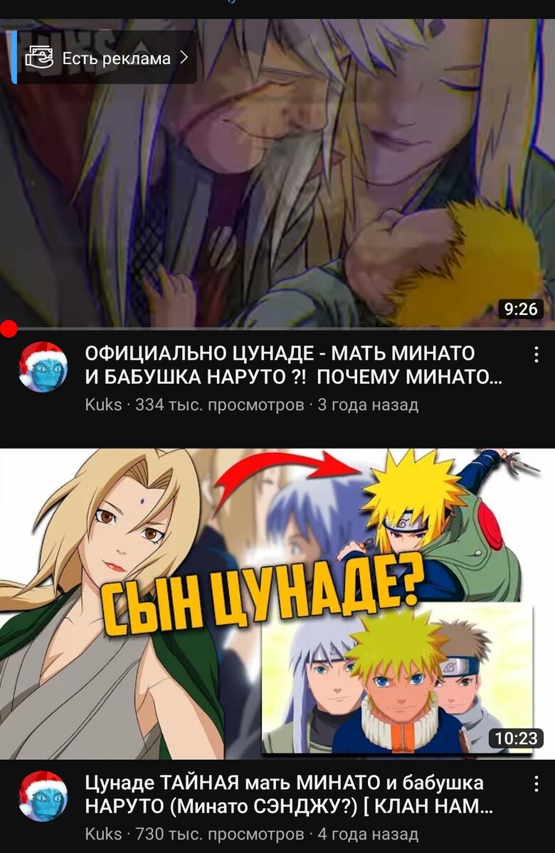 1. Цунаде мать Минато, а его отец Дан Като Часто вижу подобные заявления на просторах интернета, поэтому хотелось вывести несколько опровержений по поводу этой теории - Нигде нет информации о родителях Минато - у Минато и Цунаде слишком маленькая разница в возрасте , а именно 14 лет . Вы хотите сказать что Цунаде родила Минато в 14 лет от 27 летнего Дана ??? Ну это какой то бред Затронет немного расчеты Дан Като погиб в возрасте 27 лет на 2 мвш. И Цунаде на тот момент явно была не беременна и ей точно не было 14 Разница в возрасте : На момент 4 мвш Цунаде 55 лет Наруто 17 Минато погиб за 17 лет до начала войны в возрасте 24 лет 55-17= 38 лет было Цунаде на момент гибели Минато и рождения Наруто А теперь и сама разница в возрасте 38-24 = 14 лет Ну , видимо Цунаде у нас молодая мать 🙃 2. Клан Узумаки был уничтожен во времена Хаширамы Подобную теорию часто слышу на Ютубе . Зачастую она исходит от людей никогда не читавших мангу и непонятно чем смотревших аниме. Как же обсто