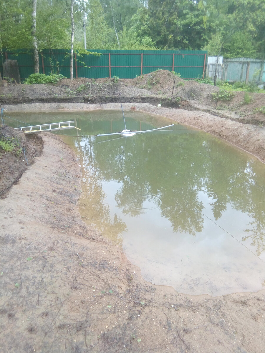 Часть 5. В середине мая начал подымать уровень воды в пруду. Поднял ровно до половины. Полностью пока не хочу заполнять пруд водой, поскольку буду делать декоративный мостик и очень не хочется, чтобы вода затрудняла данную работу. После того, как вода отстоялась и массово появились первые жители (лягушки и водомерки) решено было запустить рыбу. Годовиков обыкновенного карпа купили 16-го мая в ВНИИ пресноводного водного хозяйства в поселке Рыбное Дмитровского района Московской области. Купили 17 кг по 250 рублей за кило. Навеска рыбы от 50 до 60 грамм. В среднем арифметически получилось чуть более 300 штук. В общей массе немного попалось плотвы, зеркального карпа и штук десять окуня. Возможно, докуплю еще парочку амуров и толстолобика. И для первого года достаточно. Голова и так «пухнет» от этого нового хозяйства. После запуска рыбы за первые 16 дней замор составил 13 штук рыбок. Последние 6 дней никто в мир иной не отходил. В основном погибала рыба, которая была повреждена при вылове