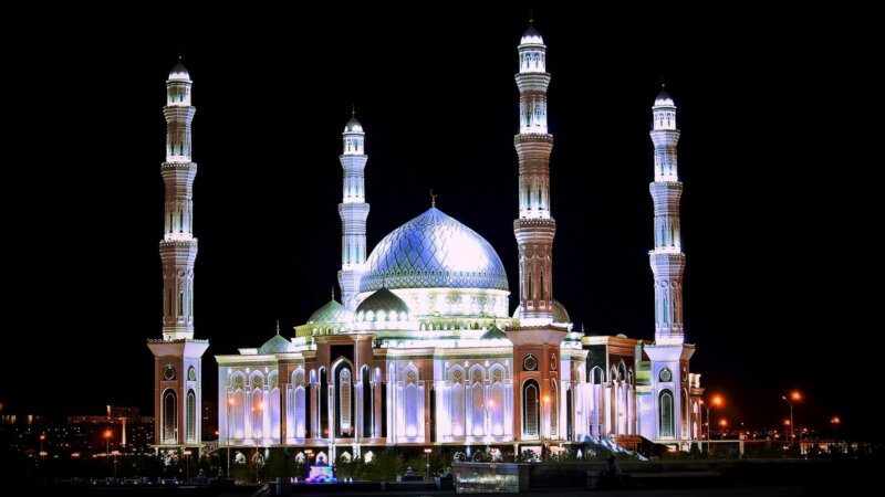 Мечеть «Хазрет Султан» «Хазрет Султан» — соборная мечеть в Астане, первая по величине мечеть в Центральной Азии. По предложению Президента Республики Казахстан Нурсултана Назарбаева мечеть назвали «Хазрет Султан», что означает «Святейший Султан». Как известно, «Хазрет Султан» — один из эпитетов суфийского шейха Ходжи Ахмеда Ясави, автора «Диван-и Хикмет», чей мавзолей находится в Туркестане. Строительство соборной мечети «Хазрет Султан» началось в Астане в июне 2009 года. В строительстве мечети было задействовано в разные периоды времени от 1000 до 1500 человек. 6 июля 2012 года в 12:30 состоялось открытие соборной мечети «Хазрет Султан», которая пополнила список уникальных объектов столицы. Здание построено в классическом исламском стиле с применением традиционных казахских орнаментов. Расположенная на правом берегу реки Есиль мечеть соседствует с Дворцом мира и согласия и монументом «Қазақ Елі». Она может вместить пять тысяч молящихся, а в праздничные дни — до 10 тысяч человек. Площ