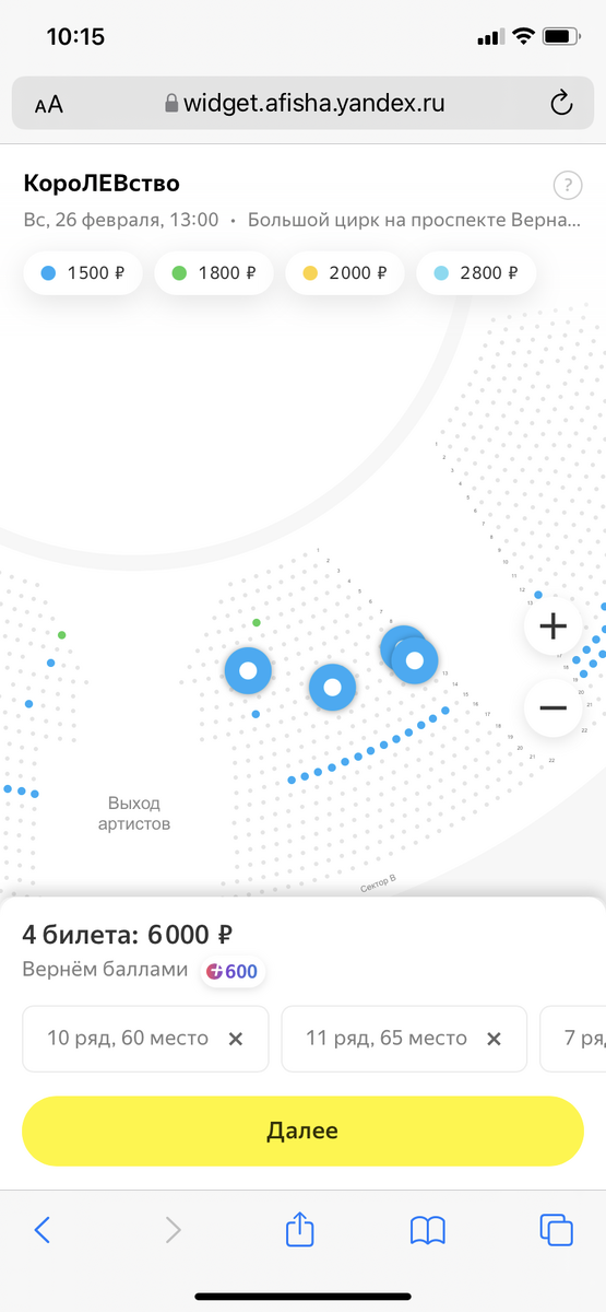 Когда я собралась покупать билеты, они оставались только на последние ряды. Я люблю цирк, но если смотреть представление из последних рядов - это смазывает всё. Конечно, это мое субъективное мнение.