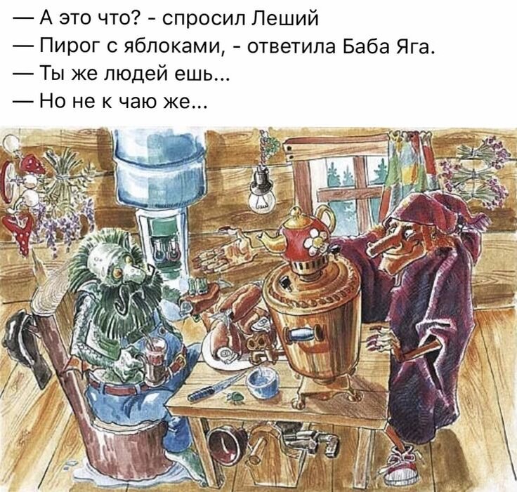 Долго ли избушка кралась на родную полянку не известно. Но по дороге Яга и Лешего на чаек пригласила. Сидит Леший с Ягой чаек с пряничком попивает, да беседу ведёт, что с Чёртом делать. Ведь неспроста он появился в их лесу. Всех чертей из тридевятого царства давным давно изгнали в лес. Избушка наконец-то до родной полянки добралась. Потопталась. Покрутилась. Землю лапами порыла, да остановилась. А Гингема продолжала беситься и всё расшвыривать. Мышам летучим, которые не успели спрятаться, хвосты накрутила так, что бедняжки летали как на пропеллере. Пауки благополучно от колдуньи в щелях попрятались. И паутиной законопатились. Лягушки в тине попрятались. А тем временем подручная Гингемы доползла до жилья Яги и спряталась в тенечке до ночи. Ведь зло творится ночью. Гюрзе надо было ровно в полночь заползти в Избушечку и накапать своего парализующего яда в зелье Яги. Но надо же было такому случиться, при выходе из избы Леший споткнулся о порожек и упал прям на Гюрзу дремавшую у порожка