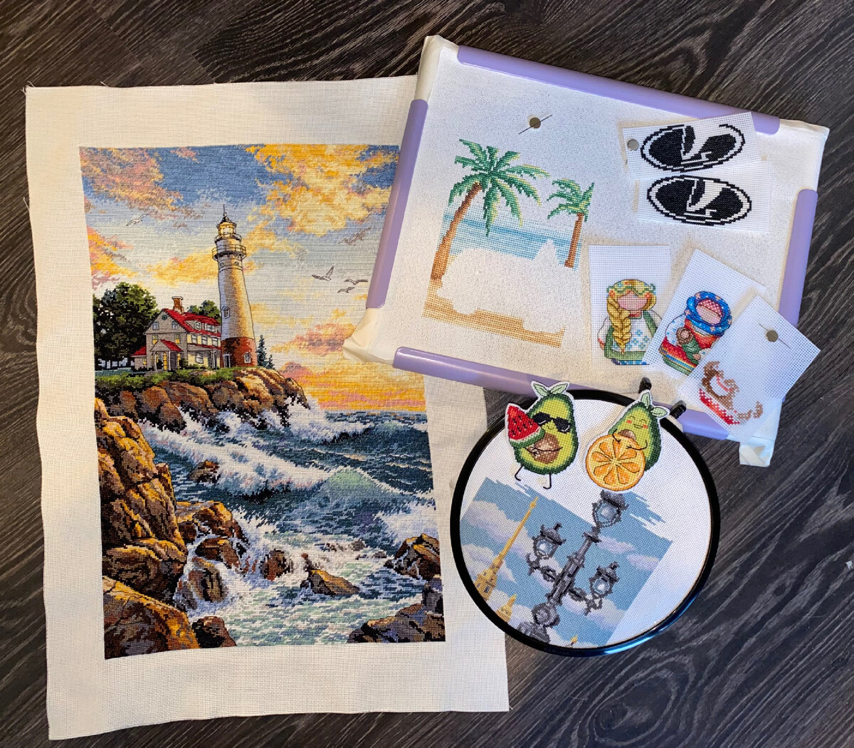 Вышито крестиков: Rocky Point от Dimensions - 5373х (финиш) Авокадо от Жар Птицы - 2100х (финиш) Обереги от Жар Птицы - 2468х Вид на Петропавловскую крепость - 771х Брелок Лада - 908х Красный микрик - 2653х (старт) Итого: 14273х Отличный вышел месяц, я поставила свой личный рекорд. Статистику по вышитым крестикам я веду второй год и это самый продуктивный месяц. Также у меня было два финиша, самый долгожданный - это маяк от Dimensions, вышивала я его с апреля прошлого года и наконец то его завершила. Еще закончила небольшой наборчик на пластике с Авокадо от Жар Птицы и начала новый с обережками. Начала новый старт под кодовым названием "Красный микрик", как он называется на самом деле я не знаю, схема из журнала Cross Stitcher. И все еще продолжаю свои многострадальные процессы Брелок и Петропавловскую крепость. Многострадальные они потому, что в обоих процессах осталось вышить всего по 2 цвета, но они так скучно шьются, что я их беру редко и вышиваю совсем по чуть чуть. Оформление: И