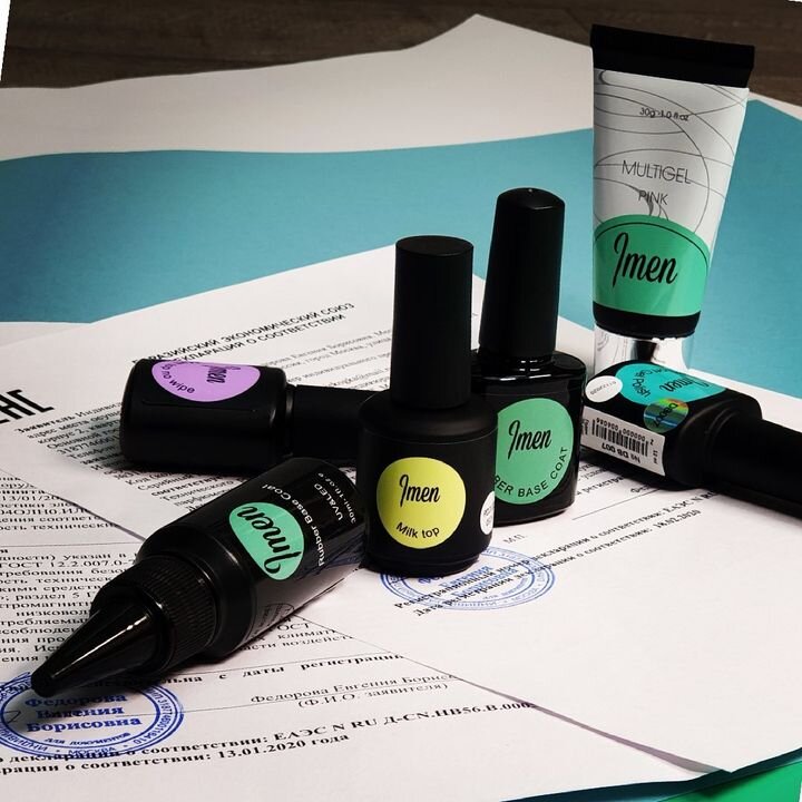 Хоть раз в неделю, но такой вопрос прилетает. Давайте посмотрим определение. «Гипоаллергенный – это значит, что вещество, продукт, материал обладает низкой или нулевой аллергенностью, то есть не способны вызывать аллергию» Вы правда верите, что химическая продукция может быть такой на 100% ? Ну как так?! Люди имеют РАЗНУЮ степень чувствительности к ингредиентам, вызывающим аллергию. Ну не бывает гипоаллергенных баз, топов и гель-лаков. И вводить вас в заблуждение я не собираюсь, утверждая, что моя продукция гипоаллергенна. Даже вода может вызывать аллергию. Да, продукция Imen - максимально безопасна, насколько это возможно в рамках химического продукта. Да, мы получили Декларации и наша продукция соответствует всем нормам, предъявляемым к косметической продукции в РФ. Да, Imen сертифицирована в Израиле. Это значит, что страна, которая предъявляет одни из самых жестких требований к безопасности косметический продукции признала, что Imen соответствует высоким требованиям и такж