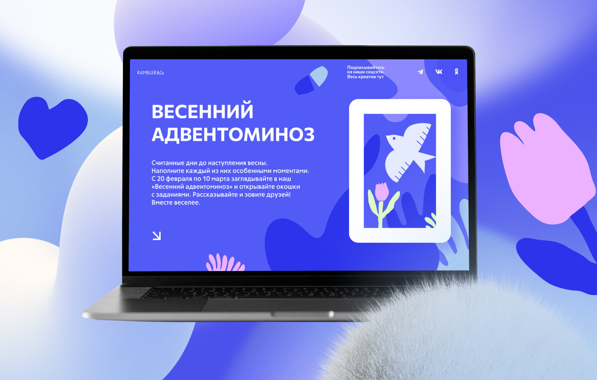 А для того, чтобы помочь нам настроиться на праздники и на теплое время года медиахолдинг Rambler&Co запустил «Весенний адвентоминоз» — интересный проект с механикой адвент-календаря на все «переходные» дни между зимой и весной — с 20 февраля по 10 марта. Для каждого дня на лендинге есть интерактивная карточка с необходимым витамином. Например, карточка с витамином З на 28 февраля советует посмотреть предсказания на весну по своему гороскопу.