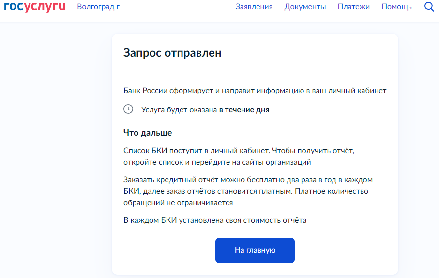 И мы заказываем тут же через Сашкин Сбербанк онлайн кредитную историю.