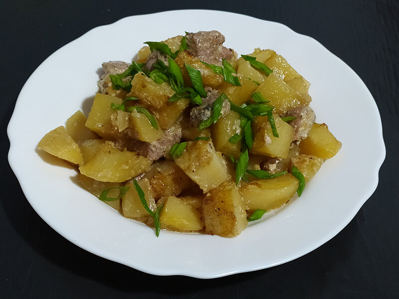 Картофель и мясо — простое и привычное сочетание. Оно выступает основой многих вкусных блюд. Но если картофель и мясо соединить со сметаной, то получится сытное и нежное второе. Приготовленное же в духовке, такое блюдо приобретает совершенно новый, аппетитный вкус. Рецепт картофеля с мясом в духовке За час можно приготовить ароматное, насыщенное второе блюдо на ужин, которой быстро утолит голод. Картофель с мясом и сметаной придется по вкусу всей семье. Ингредиенты Порций: - 3 Свинина ________________ 500 гр Картофель ______________ 500 гр Лук _______________________ 100 гр Чеснок ___________________ 10 гр Масло растительное 20 мл Сметана _________________ 100 гр Бульон куриный_________ 200 мл Соль _____________________ 1,5 ч. л. Перец черный молотый 1/2 ч. л. Шаг 1: Нарежьте мясо кусочками среднего размера Шаг 2: Нашинкуйте лук, подготовьте чеснок. Лук отправьте пассероваться на сковороду. Шаг 3: Картофель нареж
