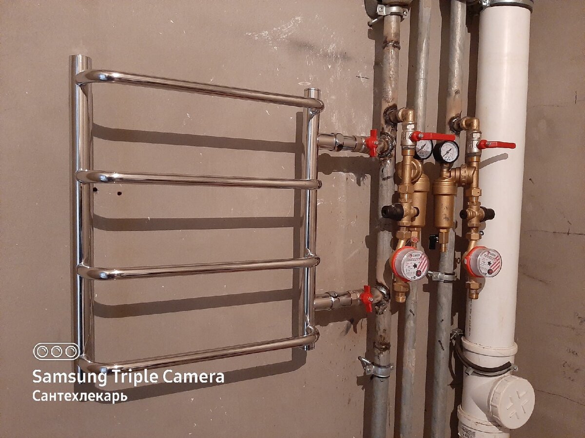 2. Меняем полотенцесушитель от застройщика на маленькую лесенку .