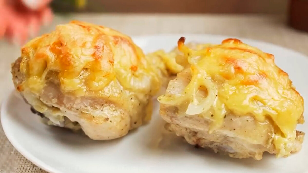 Курица под сырной корочкой в духовке получается очень вкусной, ароматной и аппетитной. Готовится очень просто и легко. Такое блюдо подходит как на праздничный стол, так и для каждодневного меню. Ингредиенты Как приготовить курицу под сырной корочкой в духовке куриные окорочка разрезаем на более мелкие части. Отрезаем лишнюю шкуру и жир. Репчатый лук нарезаем полукольцами. В миску кладем подготовленное мясо и нарезанный лук. Солим и перчим по вкусу. Добавляем приправу хмели-сунели и 3 столовые ложки майонеза. Все перемешиваем руками. Миску накрываем крышкой и оставляем курицу мариноваться на столе при комнатной температуре в течение 30 минут. Если времени нет, то можно готовить сразу. Маринованное мясо без лука выкладываем в форму для запекания. На каждый кусочек мяса сверху кладем маринованный лук. Сыр натираем на крупной терке. Аккуратно выкладываем сыр на каждый кусочек курицы поверх лука. Курицу ставим в предварительно разогретую до 180°С духовку. Запекаем 35-40 минут до готовности.