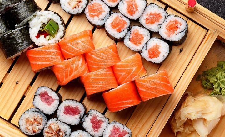 Японские суши и роллы являются довольно полезными для человеческого здоровья. Продукт подойдёт даже для тех, кто выбрал диетическое питание. Всё потому, что в составе содержатся на 99% полезные во всех отношениях продукты. Нори Разновидность морских водорослей, высушенных и спрессованных до состояния тетрадного листа. Они содержат много кальция, магния и железа, а также различных витаминов, улучшающих иммунную систему. Многократные исследования доказали, что нори являются продуктом, который можно и нужно потреблять в пищу для профилактики доброкачественных и злокачественных опухолей. Рис Для приготовления суши и роллов используют цельнозерновой белый рис, заправленный рисовым уксусом, сахаром и солью. Эта крупа богата магнием, фосфором, железом, тиамином и фолиевыми кислотами. Она содержит достаточное количество полезных веществ, а также обладает повышенной гликемической нагрузкой. В сочетании с остальными ингредиентами такой рис будет полезен для организма. Рыба и морепродукты В качес