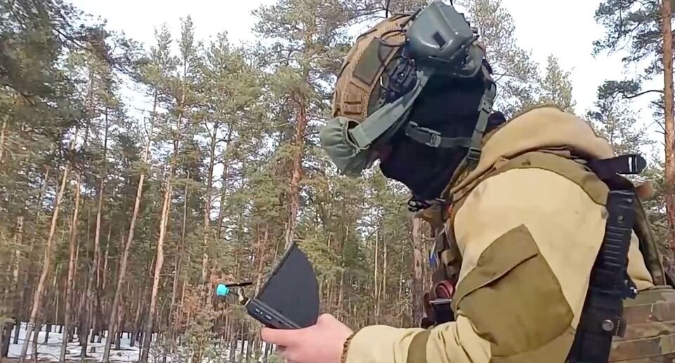 Бойцы подразделения Воздушно-десантных войск запустили «Бумеранг» над лесополосой. В расчете — всего два человека. Они собрали аппарат, закрепили боевую часть и подняли в небо. Траекторию полета отследили, не сходя с места, при помощи электроники.