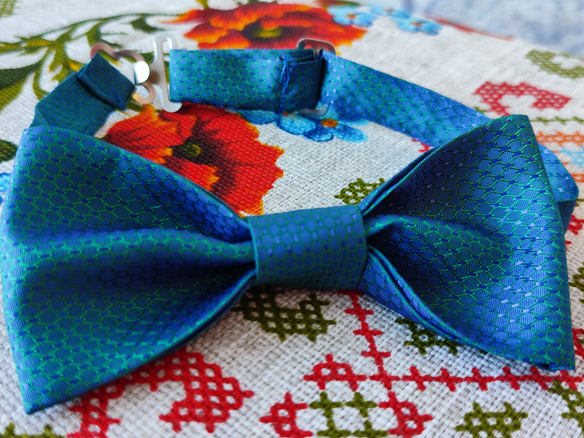 Готовясь к утреннику, мы неожиданно узнаем что нужна бабочка галстук. Можно искать в магазине, заказать в интернете, но гораздо интереснее сделать самой. Как то мне достался кусочек "галстучного хамелиона" невероятного зелено-синего окраса. Итак нам понадобится: Ткань на выбор Фурнитура комплект для бабочки Линейка Утюг Мелок по ткани Ножницы Иголка Нитка Швейная машинка, если есть, можно шить руками, будет не сильно заметно Из ткани вырезаем детали Детали размером: 11х24 - для бабочки 4х41 - для основной детали ( можно сделать запас, размер может быть до 50 см., мне мой кусочек не позволил) 5х6 - для перемычки Детали проутюживаются 1. Основная деталь пополам, на изнаночную сторону. 2. Деталь для бабочки на лицевую сторону, методом сложения к центру по узкой стороне. 3. Деталь для перемычки к центру по узкой стороне. В моем случае я воспользовалась швейной машинкой, и проложила швейную строчку с зигзагом. Самым сложным было вывернуть на лицо основную деталь и придать ей сн