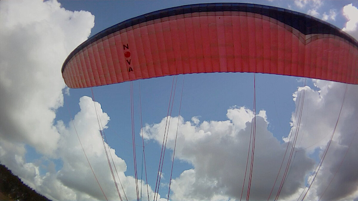 Стоило только поднять крыло, и в тот же момент меня оторвало от земли, и я со свистом унеслась к облакам. Отцепившись от троса и попав в восходящий поток, я начала накручивать пологие спирали. Ветер на высоте уже был около 10 м/с, он и понёс меня поперёк основных трасс и дорог куда-то в сторону финиша, не оставляя мне никаких шансов остаться над "домашним" полем. Наблюдая за "безбашенным" стартом новичков, опытным спортсменам уже было не до отговорок. Коллектив родил лозунг - "Будь мужиком! Затянись и сдуйся!", ставший "знаменем" этих соревнований. 😁