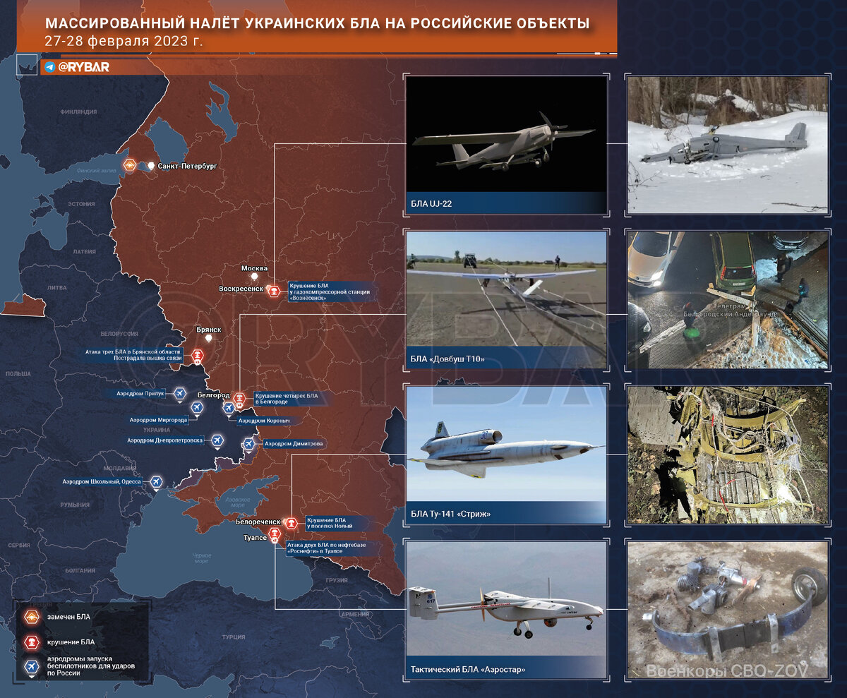 28 февраля ВСУ устроили массированный налет на различные объекты в России, применив беспилотники. За сутки украинские БЛА отметились в Туапсе (Краснодарский край), республике Адыгея, Белгороде и под Коломной (Московская область).