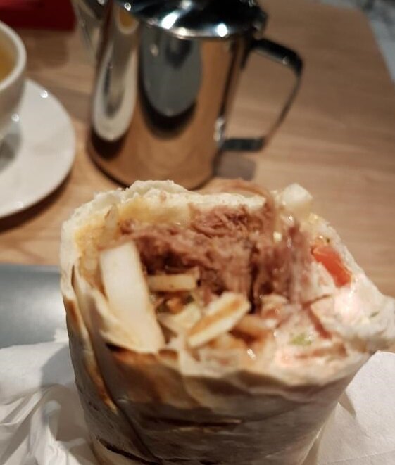 6 заведений в Санкт-Петербурге и 1 в Москве. Мы были в Питере, это кухня из серии "фастфуд", в меню есть различные вариации буррито, шаурмы и закуски. Мы пробовали шаурму на гриле с лечо и картошкой по деревенски, мясо очень вкусное и сочное, хороший соус. Там же еще есть супы, но супы на обычном среднем уровне, ничего особенного. Так же мы пробовали закуску- это крокеты с сыром, вот они действительно зашли, были очень хрустящими, тающими во рту, со вкусным сыром. Так же пили кофе, довольно таки неплохой, с молочным вкусом. И брусничный морс, оказался очень вкусным! Здесь есть категория и для вегетарианцев, неплохой выбор фалафеля, с хумусом, с брынзой и свеклой, с баклажанами. И пару вариантов шаурмы, филадельфия с рыбой и творожным сыром, с моцареллой, авокадо, соусом песто. Вообщем сюда точно стоит еще придти, ради разнообразного выбора шаурмы и незабываемого вкуса)