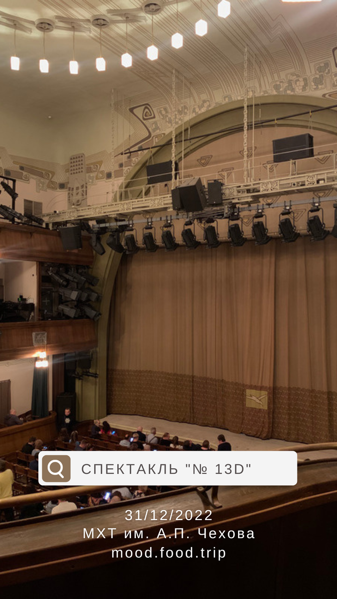 Обзор на спектакль Спектакль «№ 13D» в МХТ им. А.П. Чехова от 31 декабря 2022 года В Новогоднюю ночь могут случиться любые чудеса! Так и решила моя семья пойти на Новый год в театр! Ниже расскажу немного о наших впечатлениях после просмотра, думаю, что многим будет полезно, так как комедия «№ 13D» является одним из спектаклей 125 сезона в МХТ им. А.П. Чехова. Комедия, которая заставляет смеяться весь зал! Именно так я бы описала кратко спектакль. История происходит в Лондоне, где помощник премьер-министра решает снять номер в отеле, чтобы провести романтический вечер в компании своей помощницы. Ах, да! Они оба уже состоят в браке, но не друг с другом🙄 В номере 13D с ними случаются разные курьезные ситуации, которые заставляют их очень суетиться. Всё мешает им провести романтический вечер вдвоем: то к ним часто заглядывает управляющий отеля или официант, то неожиданным образом в номере появляется . Происходит настоящая неразбериха, но, как зачастую бывает, с счастливым финалом💓