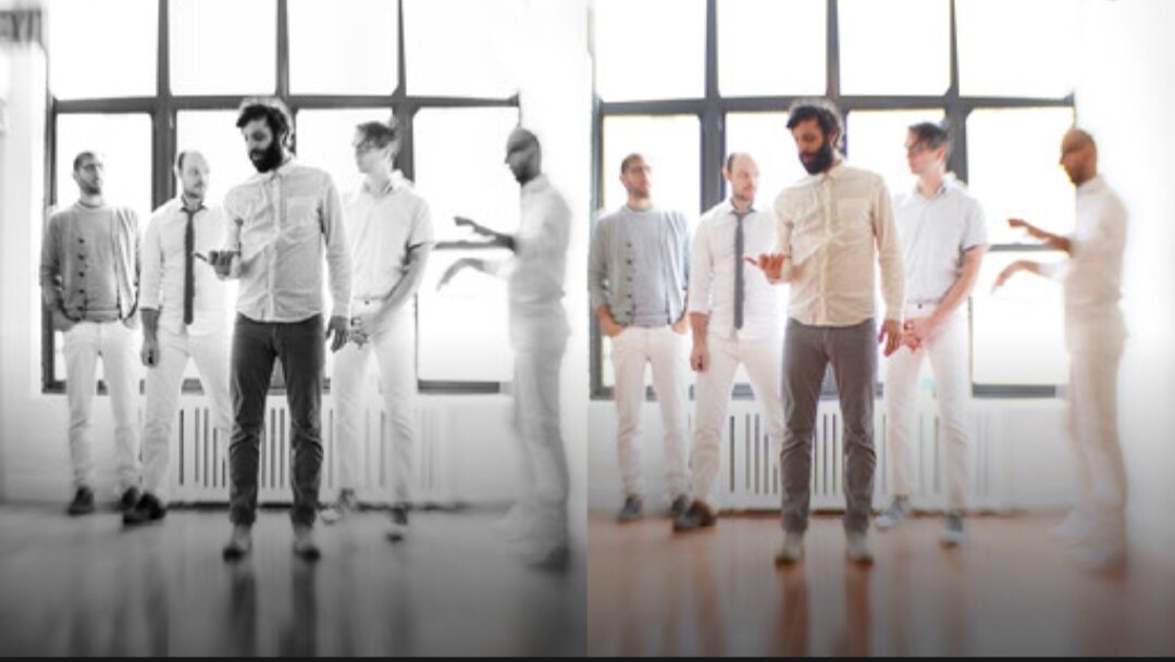 Во время съемки была использована длительная выдержка (1/25) и малая глубина резкости (f1.8), что помогло создать мечтательную атмосферу на фотографии. Редактирование. Уже во время съемки мне хотелось видеть его в чёрно-белом формате. Сделаем это в первую очередь. Обрезка. Используем окно и батарею позади группы в качестве горизонтальной направляющей при по повороте фото. Это поможет нам выровнять изображение. Свет. Чтобы создать особенный образ, нам нужно подчеркнуть разницу тонов это Ч/Б изображения. Эффекты. Поскольку мы будем работать только с Ч/Б оттенками, очень важно использовать настройки на панели "Эффекты", чтобы усилить различие тонов и контрастность. Выглядит отлично! Пора применить полученные знания на своих фотографиях.