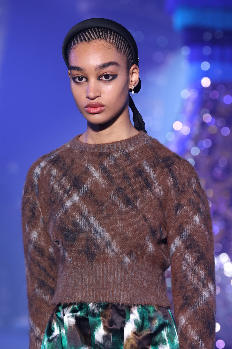 Забудьте о точных штрихах. По словам Питера Филипса, креативного директора Dior Makeup, есть более простой способ использовать подводку для глаз. “Мы создали деконструированный взгляд – нечто среднее между дымчатым взглядом и подводкой для глаз. Это сильный взгляд – вблизи это выглядит красиво, но это также видно издалека, что было важно, потому что подиум огромен”.