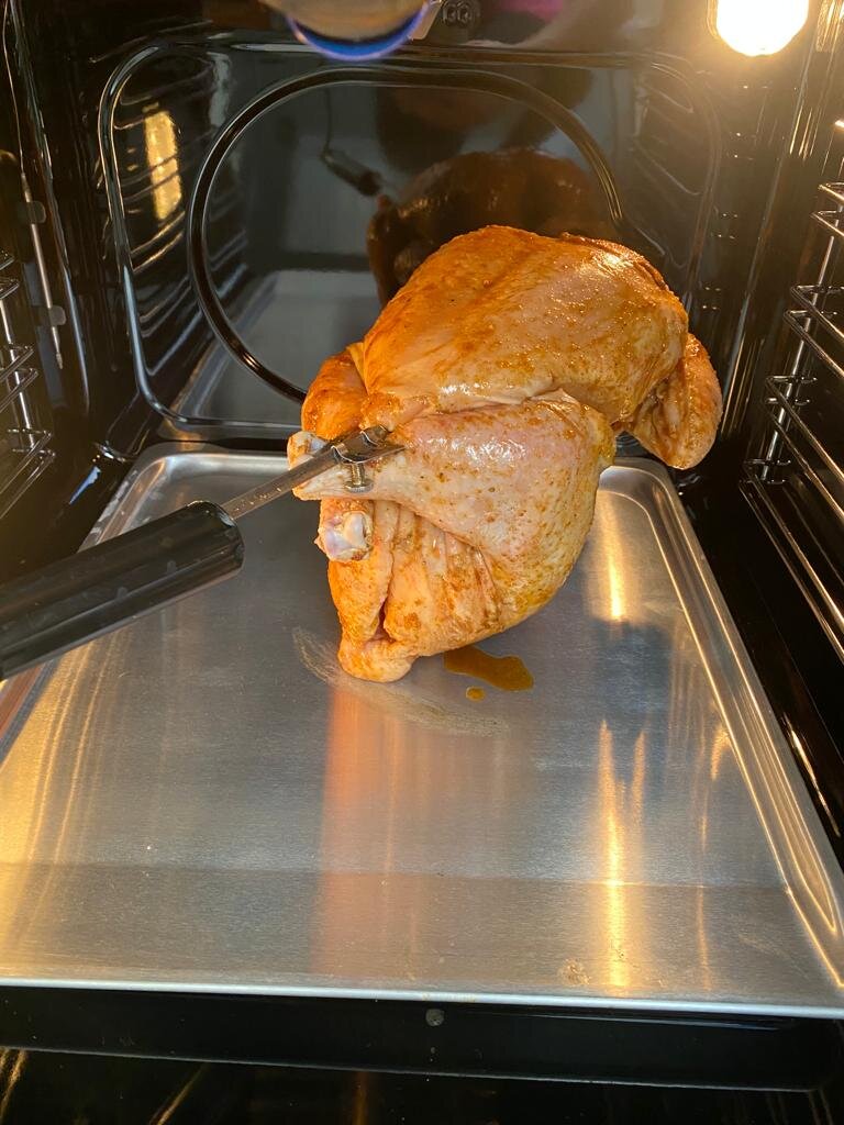 Курочку моем, обмазываем специями (можно купить готовую смесь)соль ,перец душистый .И можно ставить в духовочку.