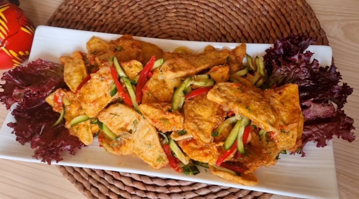 Здравствуйте мои дорогие подписчики, всех с первым днём весны. Утром наткнулась в интернете и увидела статью о пользе баклажанов. Оказывается этот овощ улучшает работу кишечника, избавляет от запоров и расстройств пищеварения. Баклажан снижает риск развития инсультов и инфарктов, улучшает работу сердца, снижает кровяное давление, избавляет от плохого холестерина. Но нужно есть в меру. Прочитав эту статью, я вспомнила рецепт салата, которому нас научила наша соседка. Она готовила этот салат на заказ , а мы иногда выходили к ней помогать. Этот салат очень сытный и бюджетный. А вкус непередаваемый, по вкусу напоминает мясной салат. Давайте вместе приготовим этот салат на ужин. Нужные ингредиенты: ◦ Баклажаны 2 шт ◦ Мука50 гр ◦ Паприка 1ч.л ◦ Соль1/2 ч.л ◦ перец, кумин по вкусу ◦ Кориандр 1 ч.л ◦ Яйцо 3 шт ◦ Огурец 2 шт ◦ Помидор 2 шт ◦ Болгарский перец 2 шт ◦ Репчатый лук 1 шт Процесс приготовления: Муку положить в пакет добавить соль, паприку, кориандр и кумин хорошо перемешать.С