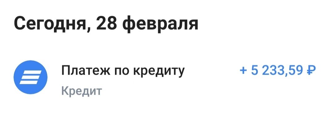 Доброго времени суток! Вчера было списание плановое по Кредиту №1 (5233,59). на утро 01.03.2023 по долгам следующая ситуация: 1) кредит №1 - 209 792,90. Платить до 29.03.29 2) кредит №2 - 368 865,55. Платить до 15.10.27 3) "благотворительность" - 1... ..., ...(порядка 10 000, может и 13 000) .Так и не поняла, сколько нужно. Оплатила на прошлой неделе, но ничего не отображено и в квитанции новой не учтено. Нужно разбираться (((( на день 01.03.2023 по долгам следующая ситуация: Думала-думала и вот, что удумала! 1) продолжить ЕЖЕДНЕВНОЕ распределение НЕ потраченных на проезд средств. 50% - в копилку "машина" 25% - в копилку "путешествие" 25% - досрочное погашение кредита №1 2) в "благотворительность" (помощь родным в оплате неожиданного долга) будут идти НЕ потраченные в магазинах средства: бонусные баллы, скидки по карточкам. Эти суммы маленькие, с ними проще расстаться. Вот решу вопрос с конечным получателем, тогда сразу буду переводить. А пока веду подсчет на бумажке. 3) Оплачивать кв