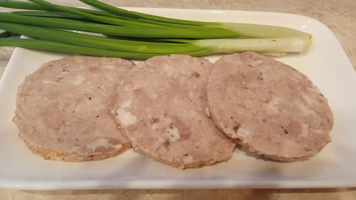 Домашняя ветчина, приготовленная своими руками, ни по вкусовым ощущениям, ни по натуральности не имеет себе равных. Продукт без консервантов. Со специями можно экспериментировать по Вашему вкусу, каждый раз получая новое блюдо. Нам понадобится: Для заметки: Способ приготовления: 500 грамм мяса нарезать небольшими кубиками. Оставшееся мясо измельчить при помощи блендера или мясорубки. Смешать в 100 мл воды: соль, сахарную пудру, измельчённый чеснок и специи (я использовала мускатный орех и приправу для мяса). Залить полученным составом мясо и очень хорошо перемешать. Оставить для маринования на несколько на несколько часов, а лучше на ночь ( чем дольше будет пропитываться мясо, тем ярче и насыщеннее будет вкус ветчины). После того, как мясо промаринуется, поместить внутрь ветчинницы жаропрочный пакет и аккуратно переложить в него подготовленный фарш. Лучше это делать небольшими порциями, чтобы хорошенько утрамбовать его с помощью ложки или толкушки. Нужно следить, чтобы в мясной мас